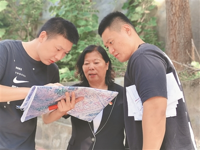 “2023北京抗洪救灾群体”——李素芳(中)讲解受灾情况。