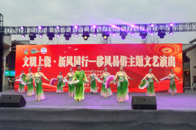“红白喜事简办好,省下钱来孝二老……”台上,渔鼓与简板敲打出悠扬韵律,省级非遗导师林妍含带领她培养的社区文艺骨干,用信州道情演绎《新风新俗家家唱》。古朴的唱腔搭配新编的唱词,将移风易俗的大道理融入乡音乡韵,引来台下观众的共鸣。