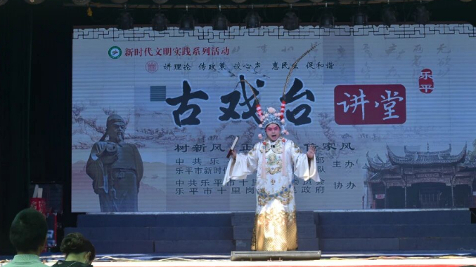 作为声名远播的中国古戏台之乡和中国民间艺术(赣剧)之乡,乐平拥有400余座风格各异的古戏台,每年举办惠民演出超400场。如何让党的创新理论、文明新风尚借助这得天独厚的文化阵地“飞入寻常百姓家”?乐平市创新推出“戏前三分钟”文明实践微宣讲活动,并将其与“深化移风易俗 培育文明乡风”主题有机融合。