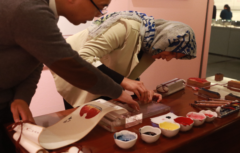 外籍嘉宾体验木版水印非遗技艺。林凤清 摄